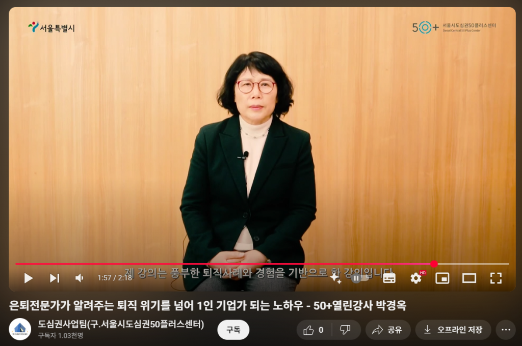 - 50+ 열린학교 강좌 촬영 : 〈퇴직 위기를 넘어 1인 기업가 되는 노하우〉